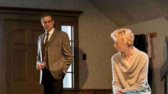 Actors Mark Strong as Donald Dodd and Elizabeth Debicki as Mona Sanders in the National Theatre's 2016 staging of "The Red Barn". Photograph sourced from a review at Panoptic UK.