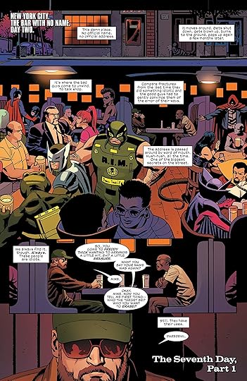 The first couple of issues were lowkey lame and I get it now but before I got it, I was just ??? so confused why he did any of this besides he is an emo boy. Daredevil puts a hit out on himself and then cleans the floor with all the random thugs that come after him. He has an actual goal though: to lure out Bullseye because he has a serum that replicates Daredevil's abilities.
