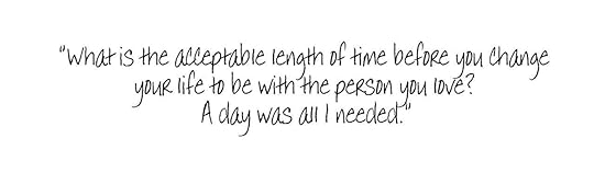 “What is the accepted length of time before you change your life to be with the person you love? A day was all I needed.”