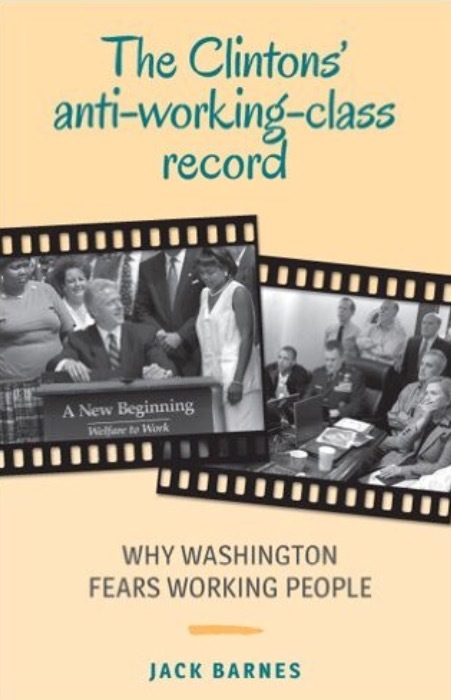 Lo deplorable es su sistema, no nosotros! Nunca antes los candidatos presidenciales de ambos partidos han provocado tanta desconfianza, disgusto y rechazo entre el pueblo trabajador como en las elecciones de 2016. Hillary Clinton califica desdeñosamente a millones de trabajadores que rehúsan votar por ella como deplorables y hasta irredimibles . Donald Trump trata demagógicamente de enfrentarnos a unos contra otros, atacando a mexicanos, musulmanes, mujeres y a quien sea. Ambos tratan de desviarnos para no que no veamos que es el pueblo trabajador en todo el mundo el que carga con la calamidad económica y social global del capitalismo y sus guerras en expansión. El historial antiobrero de los Clinton documenta la trayectoria, impulsada por las ganancias, de la clase gobernante norteamericana desde que los Clinton ocuparon la Casa Blanca por primera vez en 1993. Subraya la ira y las amplias discusiones que se desarrollan entre trabajadores que buscan comprender y resistir efectivamente los ataques patronales. Por primera vez en décadas, según revelan las palabras de Clinton, la clase dominante de Estados Unidos y su gobierno han empezado a temer a la clase trabajadora. Jack Barnes es secretario nacional del Partido Socialista de los Trabajadores. Also Available English