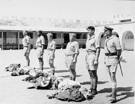 Sean Connery (secondo da dx) in “The Hill – La collina del disonore”, 1965.