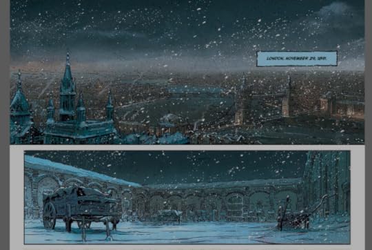 So, I liked this volume. The story was good, not fantastical good, but I enjoyed reading it. I do admit that the art pushed up the rating to 4 stars. I mean the story was good, but I wasn't totally engrossed with it. But I liked that Dr. Watson wasn't in it. He sometimes has a tendency to ruin the enjoyment for me, depending on how stupid the author makes him...or the scriptwriter. I think the best part of the book was towards the end when everything started to come together and Sherlock Holmes had to do anything to stop his enemy from winning. And look at that art...beautiful!