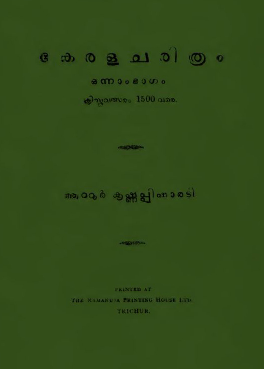 MAJOR WORKS Sangeetha chandrika Bhashayum Sahityavum Keralsahitya charitham Kerala charitham Vidya vivekam Bhasha darpanam Uthara Ramayanam (Translation) Shakunthalam (Translation) Leelathilakam(Commentary)