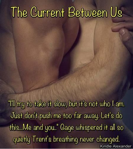 Gage wrapped himself around Trent, sliding his hands up under his suit jacket, pulling Trent fully against his body. The kiss was hot, but tender, and went on for several long minutes. Both were rigidly hard, brushing their cocks against one another. It was the most erotic kiss of his life and Gage had had some kisses. Never had one turned him on like this stolen kiss in a darkened neighborhood of a Chicago suburb. He wanted this man. God, he wanted him badly, but he wanted Trent long term. The thought of wanting this man for many years to come stunned him and made him feel like a happily drowning man.