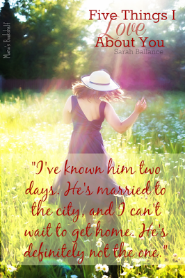 1. If this is how Sarah Ballance writes her stories, then it's a great one. Not boring, not rushed, not dragging, not lacking. Five Things I Love About You is the perfect mix of a feel good read with feelings. This is only a hundred or so pages, but I promise, it's juicy enough that I felt it's more than that.
