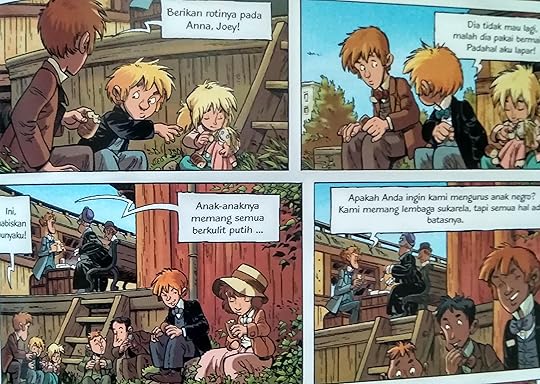 Sebenarnya saya tidak begitu sering mengoleksi komik Eropa, tapi tampilan dan premis judul ini tentang Orphan Train (usaha menyalurkan anak-anak jalanan untuk diadopsi melalui perjalanan kereta) sukses membuat saya tertarik. Saya... lumayan lemah terhadap konsep cerita semacam ini.