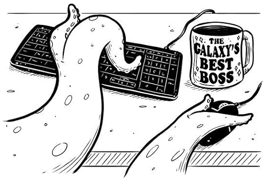 . . . Humanity wiped out along with Hitler and 93% of all species; society of rats rises and falls; society of frogs rises and falls; society of pillbugs rises and falls; society of squid rises and sticks; Gluugsnertgluug first squid on the moon, 2,973,004,412.I put the part that had me laughing in bold. If you read this book, you HAVE to listen to this audio edition of it. Hearing the reader say "Gluugsnertgluug" always gives me a little thrill. :-)