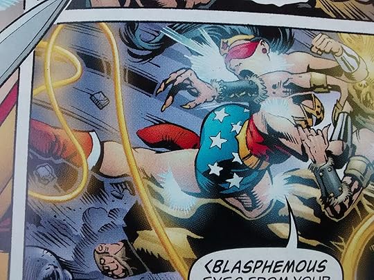 First half of this epic graphic novel by Rucka has Wonder Woman getting used to being an ambassador in New York City. Meanwhile, the 3 Gorgon sisters are trying to get to Diana. Eventually, this ends with Wonder Woman fighting Medusa as the whole world (bars, restaurants) watches.