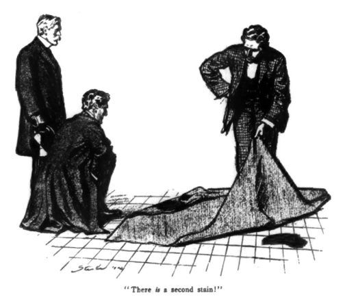 Also I loved that part lol: "Why, it is simple enough. The two stains did correspond, but the carpet has been turned round. As it was square and unfastened it was easily done."