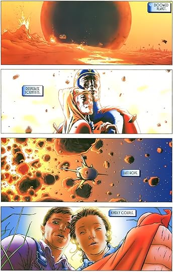 And even though both works lacked the strongest of scripts, JMS did a better job than did Millar when balancing time spent on characterization against measurable plot progression. This meant that there were less opportunities for Straczynski's sometimes lackluster attempts at humor or pathos to be too overly pronounced. But since he moves at such a brisk narrative pace, and covers events spanning upwards of eighteen years, I couldn't help but feel cheated out of what should have been a deeper, more patient look into Mark's upbringing. Instead of seeing so much about his home-schooling lessons and those patriotic news segments he absorbed, I wish there was more time directed towards portraying his relationship towards his adoptive parents. Although he seems to love them very much, I never got a sense of their rapport, saw them independently play a part in shaping Mark's values, or witness a single intimate moment they shared together. And that's a shame, because the tense and uniquely contrived circumstances of that family's union could have lent itself to some very fascinating and poignant storytelling possibilities. Fortunately, though, Straczynski proves to be rather adept at using strategically limited character moments to make his cast leave a more lasting impression than one might expect.