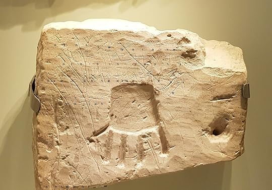 سنگ قبری کشف شده در خِربَة الکوم که برخی محققان متن مبهم آن را این گونه خواندهاند: