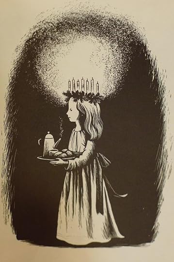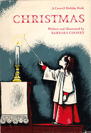 This wonderful book reads like a factual early reader. Part of the Crowell Holiday Book series, this book investigates Christmas, starting with the birth of Jesus and the Nativity story and then going back in time to the festival of Saturnalia and how the similar customs of feasting, decorating the home with ever greens and candles and giving gifts was skilfully changed to celebrate the birth of Christ so that the Pagans wouldn't miss their favourite festival. Modern day customs of Father Christmas, St Nicholas, and St Lucia's day were included. There was some interesting information about how legend has added parts to the Nativity, such as Mary being carried by a donkey, I was surprised to find this mode of transport, however likely for the time, wasn't mentioned in the bible! A very informative read about Christmas with wonderful Barbara Cooney illustrations.
