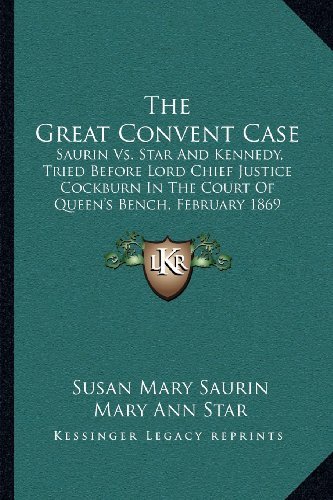 The Great Convent Saurin Vs. Star And Kennedy, Tried Before Lord Chief Justice Cockburn In The Court Of Queen�������s Bench, February 1869 is a book authored by Susan Mary Saurin in the year 1869. The book is a detailed account of a court case that took place in February 1869 in the Court of Queen's Bench, where Saurin was the plaintiff and Star and Kennedy were the defendants. The case involved a dispute over a convent property, and Saurin accused Star and Kennedy of fraudulently obtaining the property from her. The trial was presided over by Lord Chief Justice Cockburn, and the book provides a complete description of the proceedings and the arguments presented by both sides. The book also contains transcripts of witness testimonies and cross-examinations, as well as the final verdict of the court. Overall, The Great Convent Saurin Vs. Star And Kennedy, Tried Before Lord Chief Justice Cockburn In The Court Of Queen�������s Bench, February 1869 is a valuable resource for anyone interested in legal history, court cases, and the legal system in the 19th century.Containing The Speeches Of Counsel On Both Sides, And The Evidence Of The Various Witnesses.This scarce antiquarian book is a facsimile reprint of the old original and may contain some imperfections such as library marks and notations. Because we believe this work is culturally important, we have made it available as part of our commitment for protecting, preserving, and promoting the world's literature in affordable, high quality, modern editions, that are true to their original work.