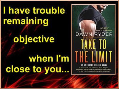 Take To The Limit is book four in the Unbroken Heroes Series by Dawn Ryder. I absolutely loved it ! I'm already craving the next book in this amazing series. So who will be the next Unbroken Hero to take the fall in the game of love ? My money is on Dare .....