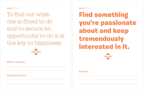 Do One Thing Every Day That Makes You Happy: A Journal is a pretty swell idea. From its bright yellow cover, decked out in shiny silver and vibrant rainbow text, to its white and orange insides, Do One Thing Every Day That Makes You Happy more or less oozes unicorns and birthday cake and that one REM song. Each page features a happy quote or graphic, along with a writing prompt inspired by said quote. There's a space to pencil in the date for each exercise and, with the exception of the New Year's themed ones, you can pretty much pace yourself how you want: work through each page in chronological order; skip around to your heart's content; or only write when you feel inspired (though skipping days kind of negates the "do one thing every day" part, don't you think?).