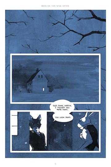Each page of "Iron" is a sombre reflection of desperate times. The story is grim and dreamy, supported beautifully by the moody artwork. There are few expected elements - no sound effects, a changing narrative, and characters that are far more complex than their dialogue is. I would love to see more of this world.