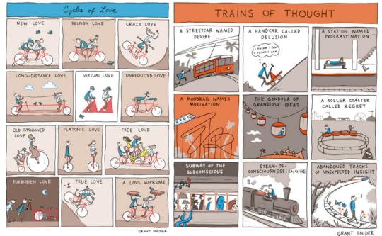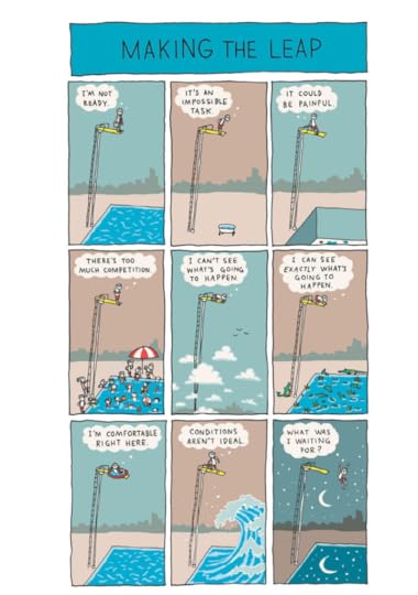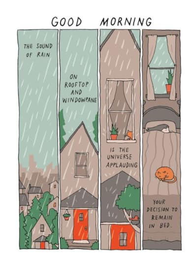 But do not despair. Every comic in this book was once a blank page. (Perhaps one or two should have stayed that way.) Since T began drawing Incidental Comics way back in 2009, my goal has been to create at least one full-page comic strip per week. I often keep a sketchbook with me to capture stray ideas that float by. Most mornings before work I guzzle coffee, sit at my drawing table, and try to shape these unformed ideas into something worth showing the world."