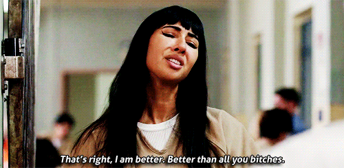 “Then give them something to be afraid of,” she says. “You’re a badass bitch. You’ve done way worse than half these girls.”