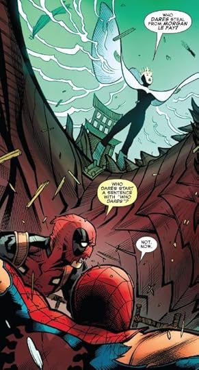 Why is Spider-Man more annoying than Deadpool? Once you start out annoying Deadpool you just become annoying, not funny annoying, not charming annoying, just annoying. Stop it.