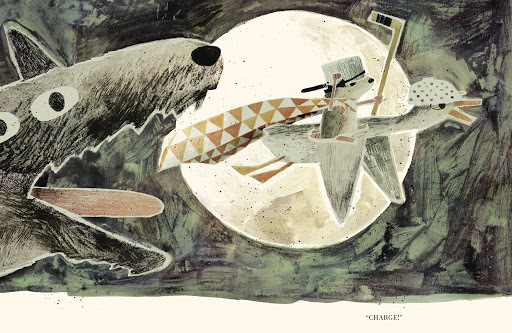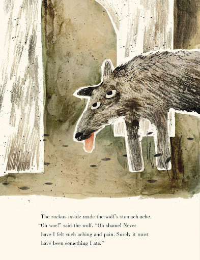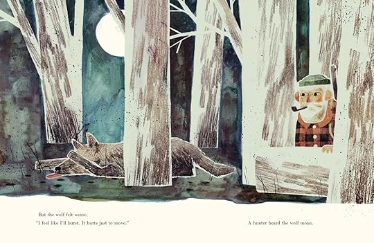 What did I think? I absolutely loved the illustrations, drawing, and color tones. The eyes of the wolf were a bit off for me and not exactly what I would picture them as being. It's always difficult to judge how a picture book will sit with children and I truly wonder at this one. All I know is that if I had read this as a child it would have made me anxious. As an adult I probably took it too seriously and did not like it. I'm certain others will love it. Do let me know.