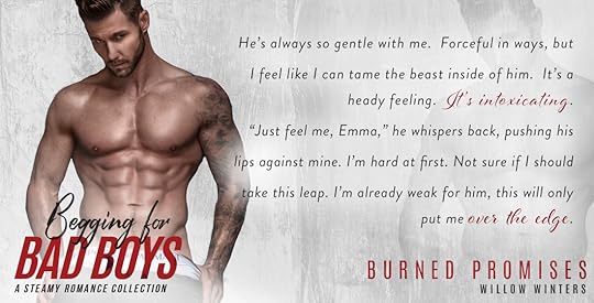 I voluntarily reviewed an ARC of this amazing collection! I couldn't stop reading!! Burned Promises Willow Winters: Derek joined the bad guys to make money to take care of his mother when she was diagnosed with cancer. Emma left him after high school to go to college. Now Derek has even more power than ever plus many legitimate businesses. And he wants Emma back. She can't deal with drugs. What will Derek do to keep Emma?