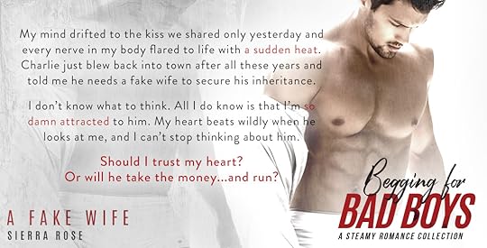 A Fake Wife by Sierra Rose features Charlie and Jamie. They were best friends when they were growing up, but Charlie left town after their high school graduation, and she hasn't heard from him since. Now he's back in town and Jamie's determined to find out exactly why. When she discovers he has a plan to marry someone stupid enough to put up with him, cash in on his inheritance, then divorce her and leave again, Jamie's mad. Even when Charlie decides he wants to marry her, she's not about to fall for him and his playboy ways. This is a nice friends to lovers romance.