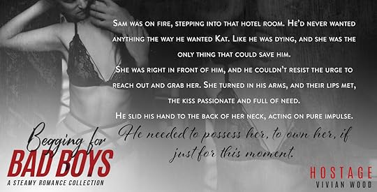 Hostage by Vivian Wood -Somehow, the title "Hostage" doesn't seem to really fit this story, Kat was really a human trafficking slave. This is a decent story, though it feels a bit forced & a little bit unbelievable in some places. The story does not flow as smooth as some of the author's other works. Kat & Sam have walked thru horrible life situations & come out the other side with a HEA. They are likable as characters.