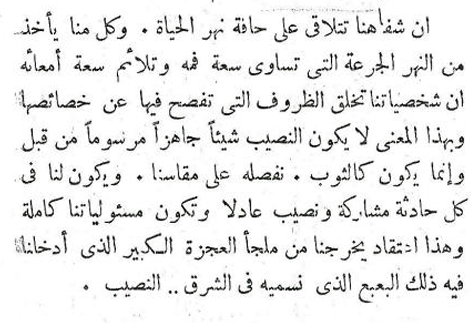 إن النصيب ليس كما هو فى ذهن الناس مجرد لطشة من لطشات المجهول، بل هو إرادة ذات حبكة وعملية واعية فيها رسم وتخطيط لا مفر منها ابدا مهما ابدع العقل فى وسائله.