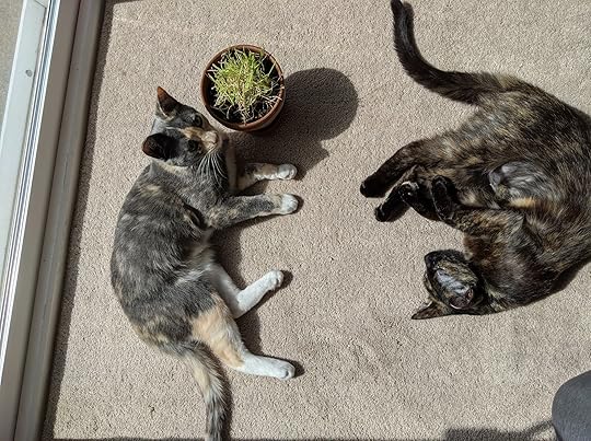 Two months ago, a few weeks into lockdown, when it became clear that we were in this for the long-haul, I got in touch with my local shelters and talked about getting a cat. Initially the plan was to get an older black cat, since those are the ones that have the hardest time getting adopted (because of the associations with witchcraft - lol - their bad contrast for instagram - groan - and the hair showing up on stuff). However, most of the shelters were no longer allowing adoptions and many had placed all their cats in foster homes. Having only ever known outdoor cats, the more we learned about indoor ones, the more it made sense to adopt two together. One of the local trap-neuter-return workers in a local foster associated with a shelter told us of two 5 month old girls, littermates, and although they weren't black cats a pair of sisters sounded perfect. Except that, after a few nights, it became clear they were NOT a bonded pair. I'm not sure they're even sisters. They had absolutely opposite personalities and had to be watched constantly to avoid fights and in the end separated in different rooms till we figured out what to do. In this strange turn of events we turned to the internet. Most of the advice out there is.. obvious and centered around introducing two cats who don't know each other but one of which knows you well. Not two cats who were fostered together for two months, hate each other, and don't know you! In any case our searches brought us to My Cat from Hell with Jackson Galaxy and in the end to me picking up this book.