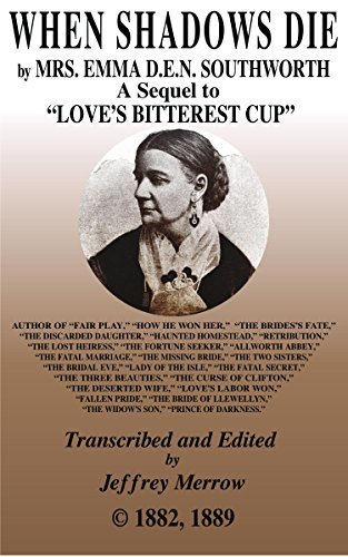 “When Shadows Die” resumes the story of the Force family from where it paused at the conclusion of “Love’s Bitterest Cup.” Written by Emma Dorothy Eliza Nevitte Southworth (1819–1899) and first Copyright in 1882. Transcribed and edited by Jeffrey Merrow from the Burt edition. 287 pages; 84,000 words. Contents: - Meeting and Parting. - Startling News. - The News. - Rosemary is Startled. - The Earl is Startled. - A Strange Meeting. - An Old Salt. - The Loss of the “Kitty.” - “The Sea King’s Daughter.” - The Privateer “Argente.” - Where is Roland? - On To Washington. - The Captain of the “Argente.” - Who He Was. - Leonidas. - The Old Skipper’s Despair. - On Board the Prize. - A Terrible Revelation. - The Bitterness of Death. - “When Lovers Meet in Adverse Hour.” - Country Visitors. - New Hope. - Too Great a Burden. - A New Mother. - Father and Daughter. - Brighton Years Ago. - Luigi Saviola. - A Mad Act. - After the Marriage. - Awakening. - Pretended Consolation. - A Wolf in Sheep’s Clothing. - How it Happened. - Father and Daughter. - A Shock. - “Tell Me All.” - The Dawn of a Brighter Day. - New Life. - A Clouded Honeymoon. - A Startling Encounter. - The Other Side. - The Earl’s Discovery. - Husband and Wife. - Love Stronger Than Fate. - Winding Up. - Revelations. - Mother and Son. - The Meeting of Old Friends. - A Double Wedding at All Faith.