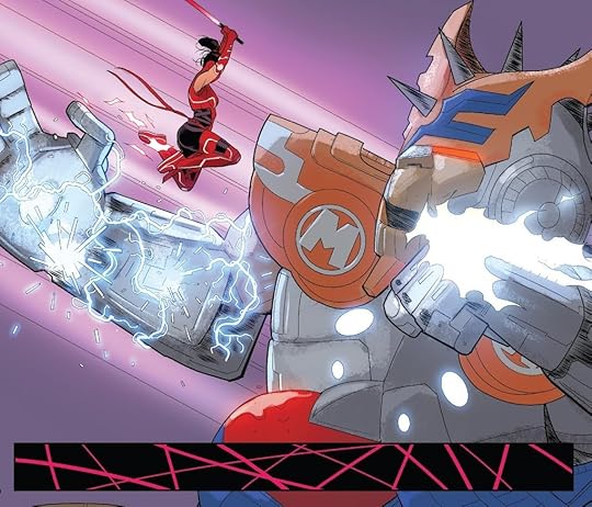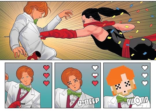I mean, this is pretty much just mindless fun and I laughed at the Pacific Rim reference, but Arcade is so annoying that he almost reads like a caricature of typical villains that it wasn't hard to guess he had struck some kind of a deal with a bigger villain that I had no trouble guessing the identity of.