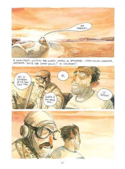 I disegni sono bellissimi, in particolare le tavole paesaggistiche in acquerello. Anche la storia, le due storie che si intrecciano mi sono piaciute. Non ho dato il voto massimo perché le storie sono solo accennate, finiscono di colpo senza una vera e propria (per me) conclusione. Comunque, una graphic novel molto bella che vale assolutamente la pena di leggere.