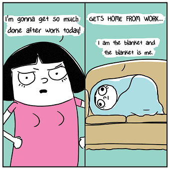 احساس میکنم این ژانر کمیک داره برام تکراری میشه، همش درمورد اینه که آره، همه به جز من اکستروورت و اجتماعی و موفقن، ولی من دوست دارم پیژامه بپوشم و توی خونه بخوابم و شکلات بخورم، با اینکه بسیار relatable عه ولی دیگه تکراریه.