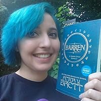 Other than Selia, most of the characters are fairly one-dimensional. In a series of flashbacks, we learn about Selia’s youthful relationships and how some key events at that time have affected her views and development as a person. Brett spends most of Barren exploring Selia’s personal relationships with three different young women, her struggles against prejudice and small-town politicking and power plays, and the effect of these things on Selia’s life, with the demon-fighting as more of a backdrop. I would have preferred it if the story had put more emphasis on the latter. Still, if I’d had the background of more of the series to add depth and color to the world, I think I would have appreciated Barren more.