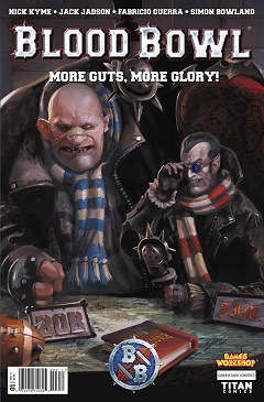 Crunching tackles, bloody violence, horrible deaths - and that's just the referees! The runaway smash-hit board game and videogame comes to comics! Armor up and enter the most vicious and dangerous fantasy football tournament you will ever encounter! Dive into no-holds barred violent sports action as a rag-tag team of humans, the Hochland Harbingers, attempt to claw their way to the top of the Blood Bowl league! Can Dreng Sturmblud, a former star player, since crashed to rock-bottom, help the Harbingers fend off the terrifying opposition and finally lift the fabled cup - or will brutal injuries, team infighting, and plain old on-pitch fighting crush the Harbingers' dream?!