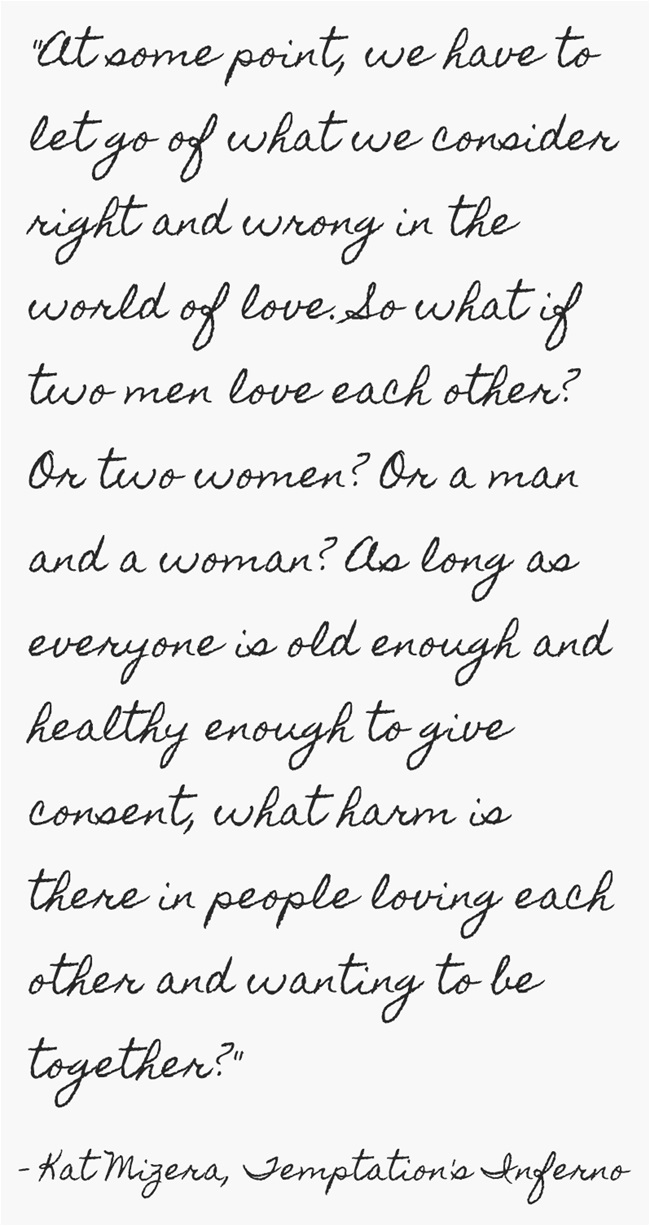 “I don't see you as a man or a woman - I only see the person who makes me feel whole. There's never been anyone, of any sex, that makes me feel like you do-when I touch you I don't feel different anymore.”