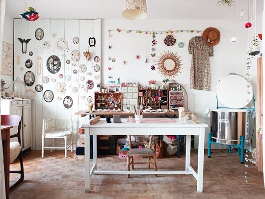 Part Two features more gorgeous studios and offers even more organizational and decorating tips, this time based on type of art. So the spaces featured are studios for artists in Crafts (e.g., woodworking and ceramics); Fashion and Textiles (e.g., textile designer); Fine Art, Illustration, and Graphic Design; Writing, Blogging, and Photography; and Workshops and Upcycling (e.g., stage set designer).