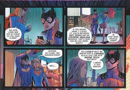 The Good - the art suits the tone of this comic - Hope's pacing (wish that she did more comics) - super girl / bat girl teamup - love the Burnside outfit (I know a lot of people hate) - Babs' clothes (good window into mid 2010s yuppy / hipster style)