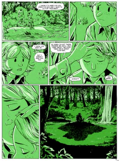 Yes, these are tears in my eyes. All throughout this book, I was impressed by the art style that I think expertly captures a child's view of mental illness, and by the coloring that really paints the mood. The episodic nature of each little tale I was less sure about. But damn if this author/illustrator didn't pull it all together in such a poignant and heartbreaking way. This is definitely going onto my list of graphic novels that I would highly recommend, with the disclaimer that the depiction of schizophrenia and its effects might be too much for some readers.