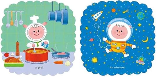 This is a cute way to show twins that they don't have to be a like. That each can be their own person. In the picture, below, we see that the girl is an astronaut, and the boy sheep is a chef.
