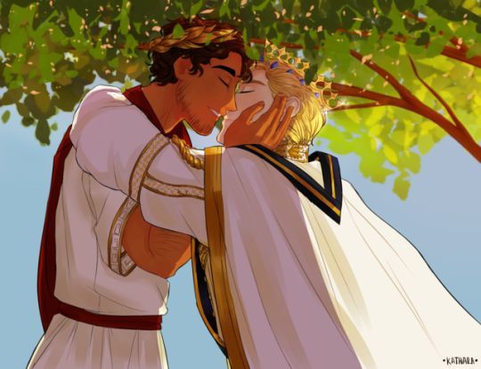 “I heard that they allied themselves in secret months before,” said Alexon. “And that the Prince hid Damianos from Kastor, pretending he was a slave, while they courted privately.”
