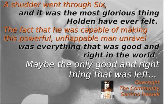 “Because this is out of control. I was raised in this Community, Six. These people were my family. Growing up, people talked about the Farm and the people who worked there like they were clergy. They were what other members aspired to be, or at least respected even if that wasn’t what we wanted. And now you’re telling me it’s this fucking—”Six and Holden's relationship takes second place to the unveiling of The real Community, yet in a way it's fitting. There's a steamy sexual component, and a tentative mental connection that develops where nothing should exist because of the nature of Six's abilities (it's like there's a barrier around his thoughts and feelings) while Holden being empathic feasts on the emotions of others. It's a tantalizing work in progress.