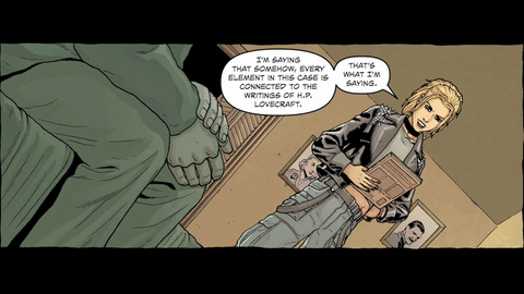 First, we get the introduction of Lovecraft as a character, which brings in interesting metatextuality, both in how Lovecraft got the ideas for his stories and for the part he places in them.