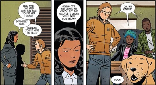 We did see the very welcome return of Kate’s dog Lucky, who I enthusiastically searched for in every panel and will basically never get enough of. I simply adore that dog. It’s unfortunate that while volume one spent time building time with Kate’s new LA friends, they don’t get much individual treatment here, nor do we see them deepening relationships with Kate – and the only time they do, Kate is….not herself. The only exception is Riviera, the police detective who is an excellent foil for Kate. I would love to see more of them together in volume three.