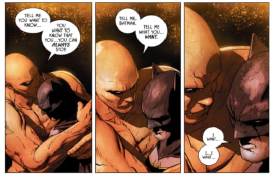 Halfway though the volume Batman narrates (what is admittedly a kinda good speech in terms of writing) about his parent's death, his childhood and the reason he became Batman. I don't want to spoil the controversial thing that Batman said that everyone was surprised with, but what we take away from the monologue is basically this: Bruce Wayne died the night his parents died, and Batman was born. That little boy chose to "die" so in turn Batman could live, so in turn he could save people. It makes it seem as if Batman is the true self, Bruce Wayne playboy persona is a mask, while the real Bruce Wayne died.