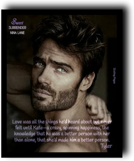 Tyler and Kate have become my favorite couple within this series. Their instant connection was powerful and I savored every moment of their fiery sexual chemistry. Sweet Surrender is the perfect choice for when your in the mood for a truly feel good, heartwarming and flirty romance. Thank you, Nina for another amazing reading experience.