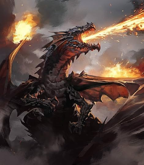 Moroda held her breath and it was suddenly on top of them -- a dragon of immense size. It had deep, silvery-blue scaled and black thorns, and it's wings blotted out the sky
