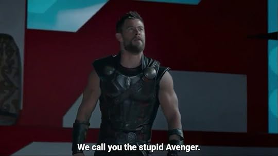 Thor begs Daddy-o-Odin to give him five minutes sans hammer, because Hulk continually taunts him with, “Let’s see how tough you are without your f**king hammer, you long-haired a@$hole!”