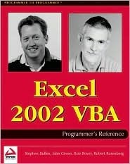 Based on the successful content and format of Excel 2000 VBA Programmer's Reference, this new edition has been fully updated for Excel 2002. The authors are all Excel MVPs, involved daily in supporting the Excel VBA programmer community.