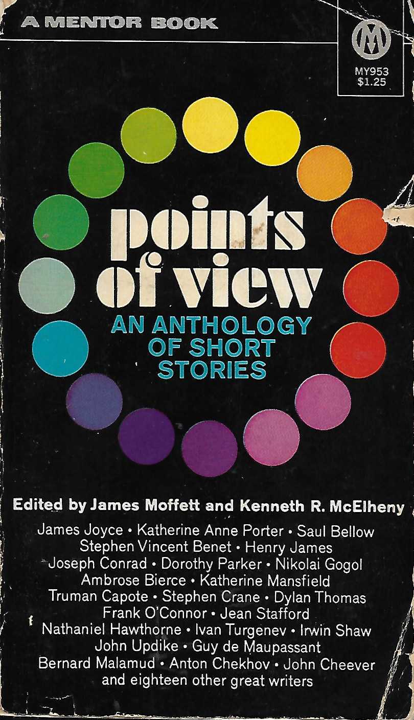 Wish I still had my copy of this. Apparently it has been new versionize'd :: Points of View: An Anthology of Short Stories (1995) ;; a different clutch of authors. What you get are story instances of --:: Interior Monologue, Dramatic Monologue, Letter Narration, Diary Narration, Subjective Narration, Detached Autobiography, Memoir (or Observer Narration), Anonymous Narration (Single Character Point of View), Anonymous Narration (Dual Character PoV), Anonymous Narration (Multi-Character PoV), Anonymous Narration (No Character PoV). Which by no means sounds exhaustive. That's from the ToC of the 1995, and I'm not saying it's the same or different taxonomy in the 1966 edition. If you're a (serious) writer, you'll probably want your own copy of each edition.